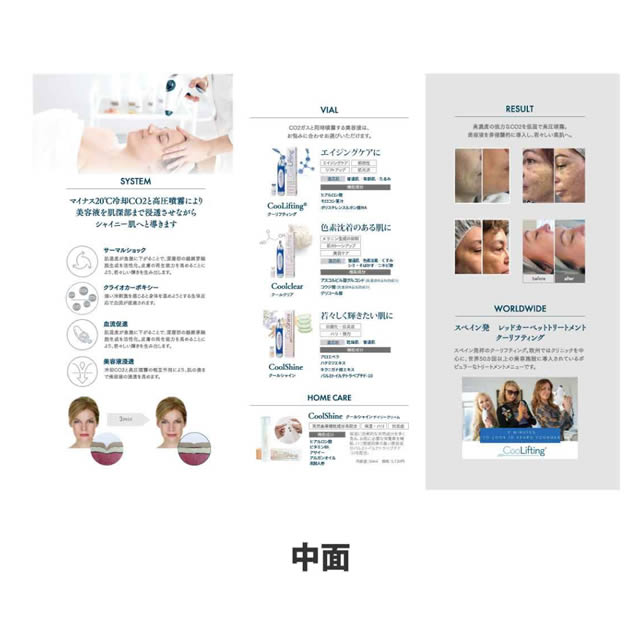 内容:クーリフティングトリートメントの販促パンフレットです。カウンセリング時にもご使用いただけます。50枚セット。