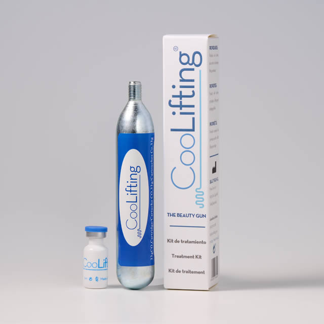クーリフティングトリートメント施術の為の美容液・ガスカートリッジのキットです。
